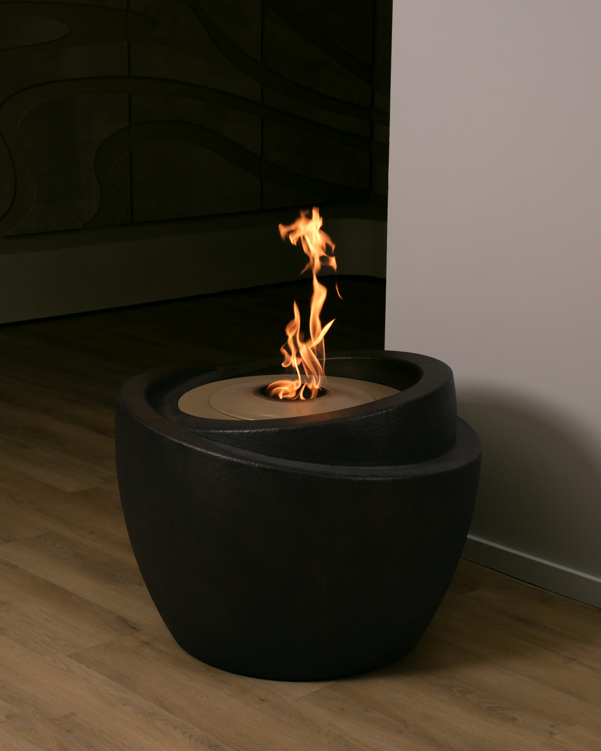 flame essence – bronze edition by MOARA® is a hand-sculpted fire object finished in liquid metal.